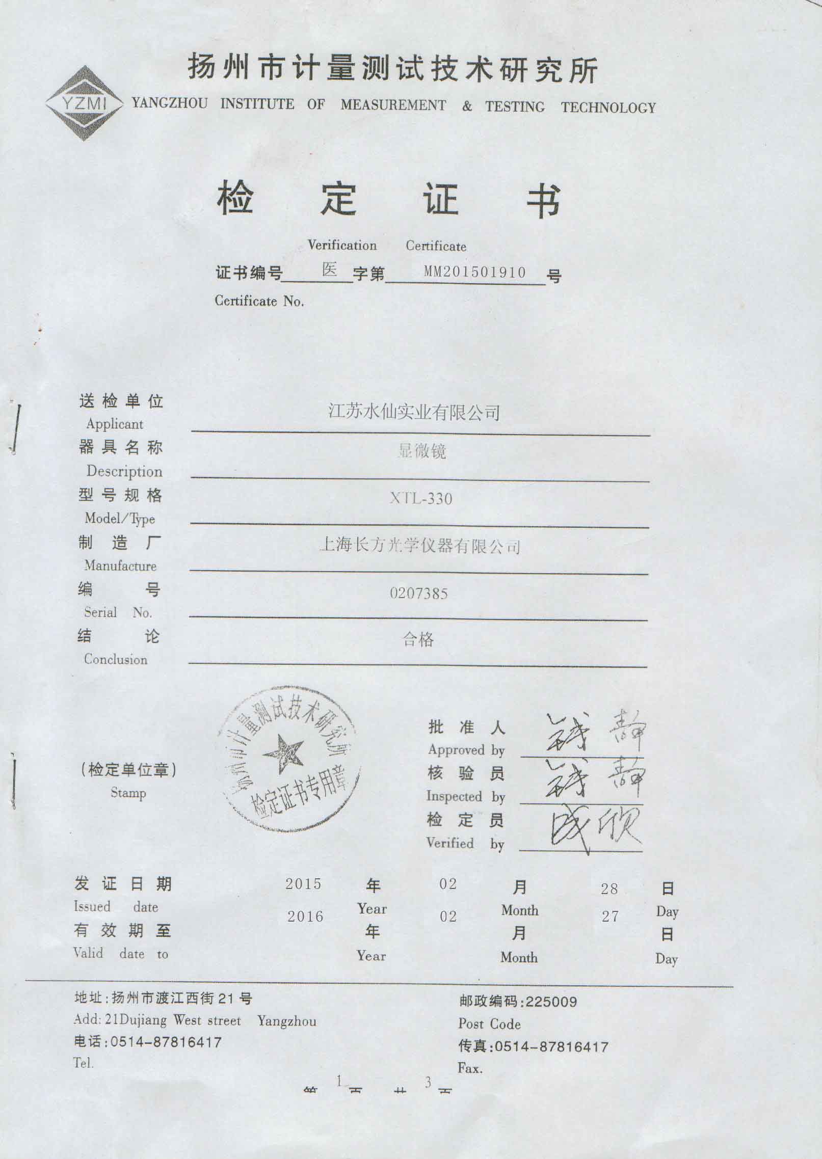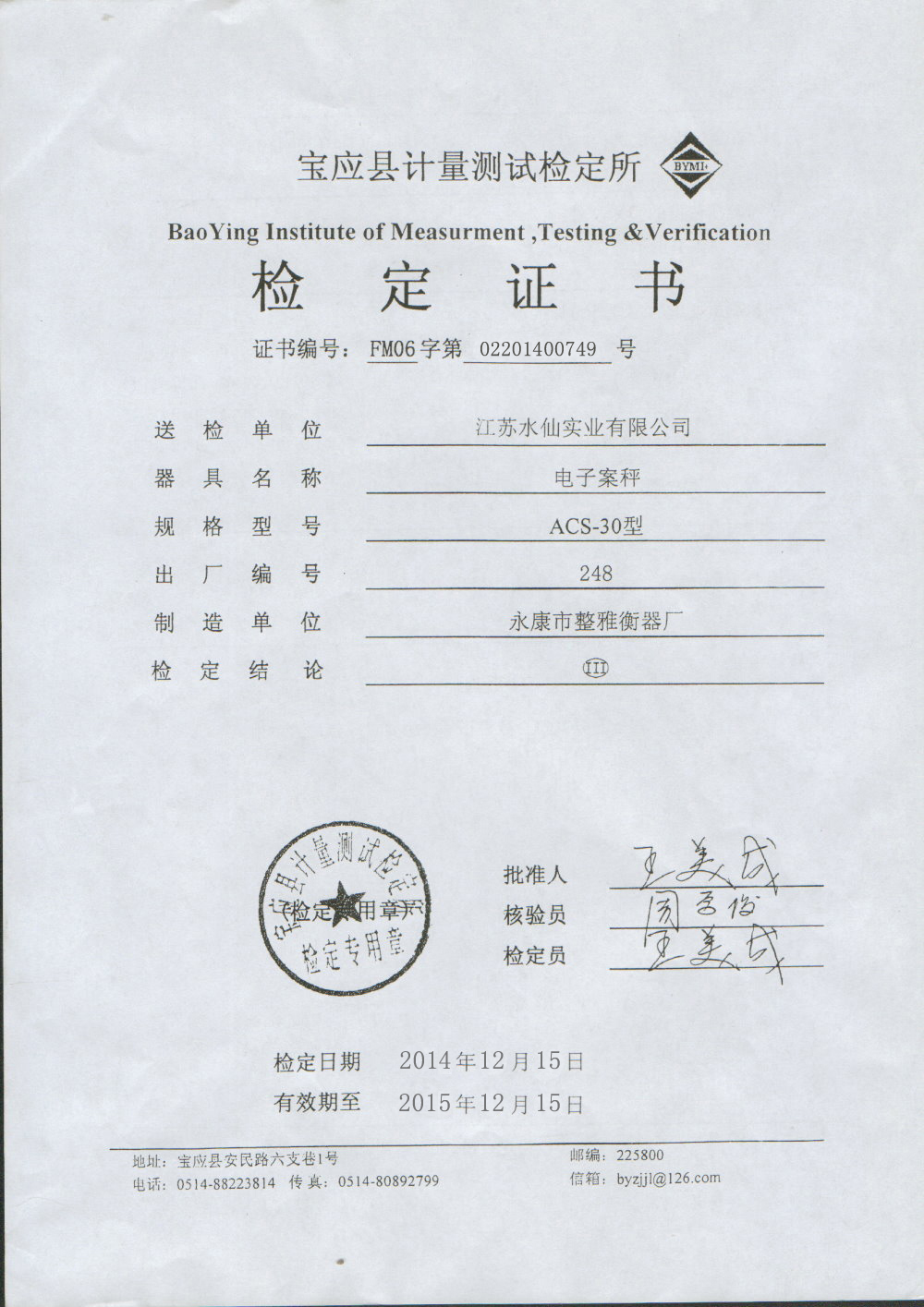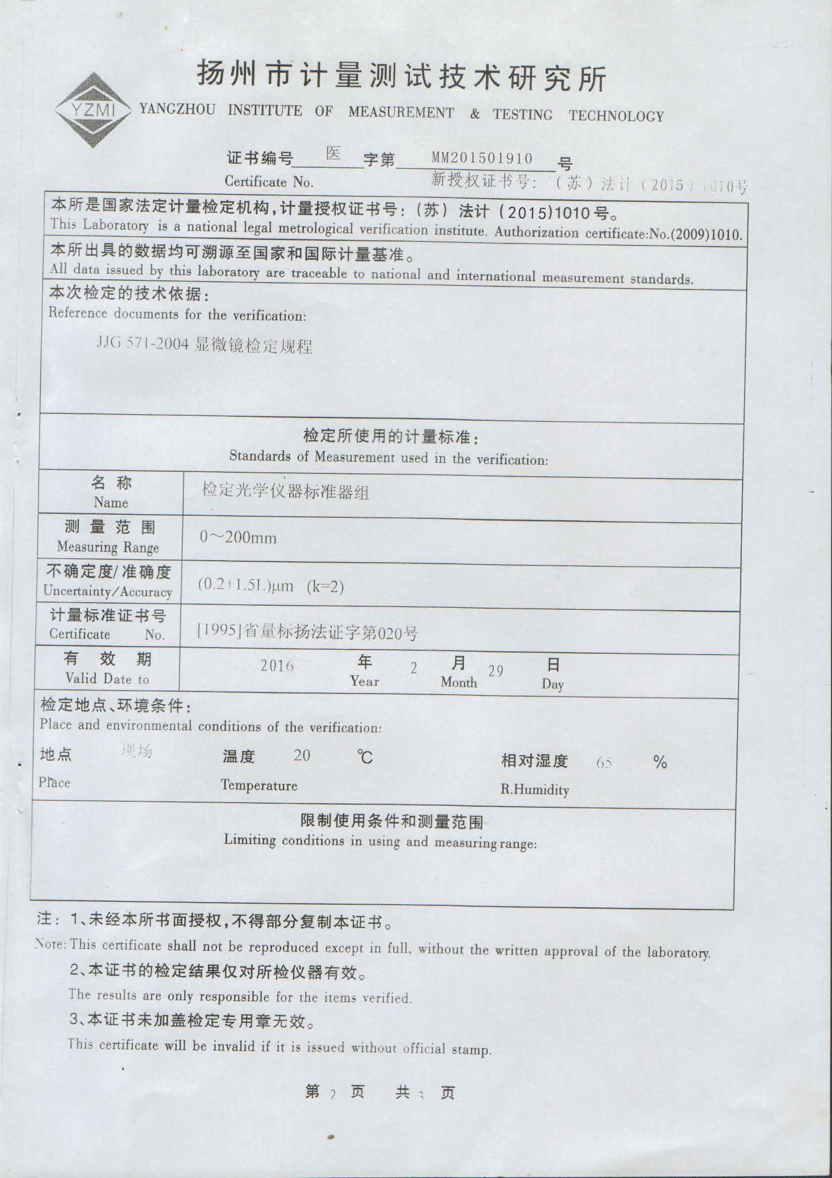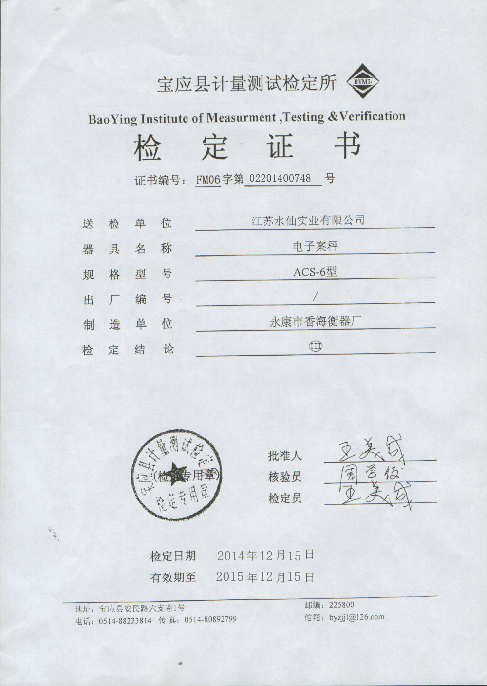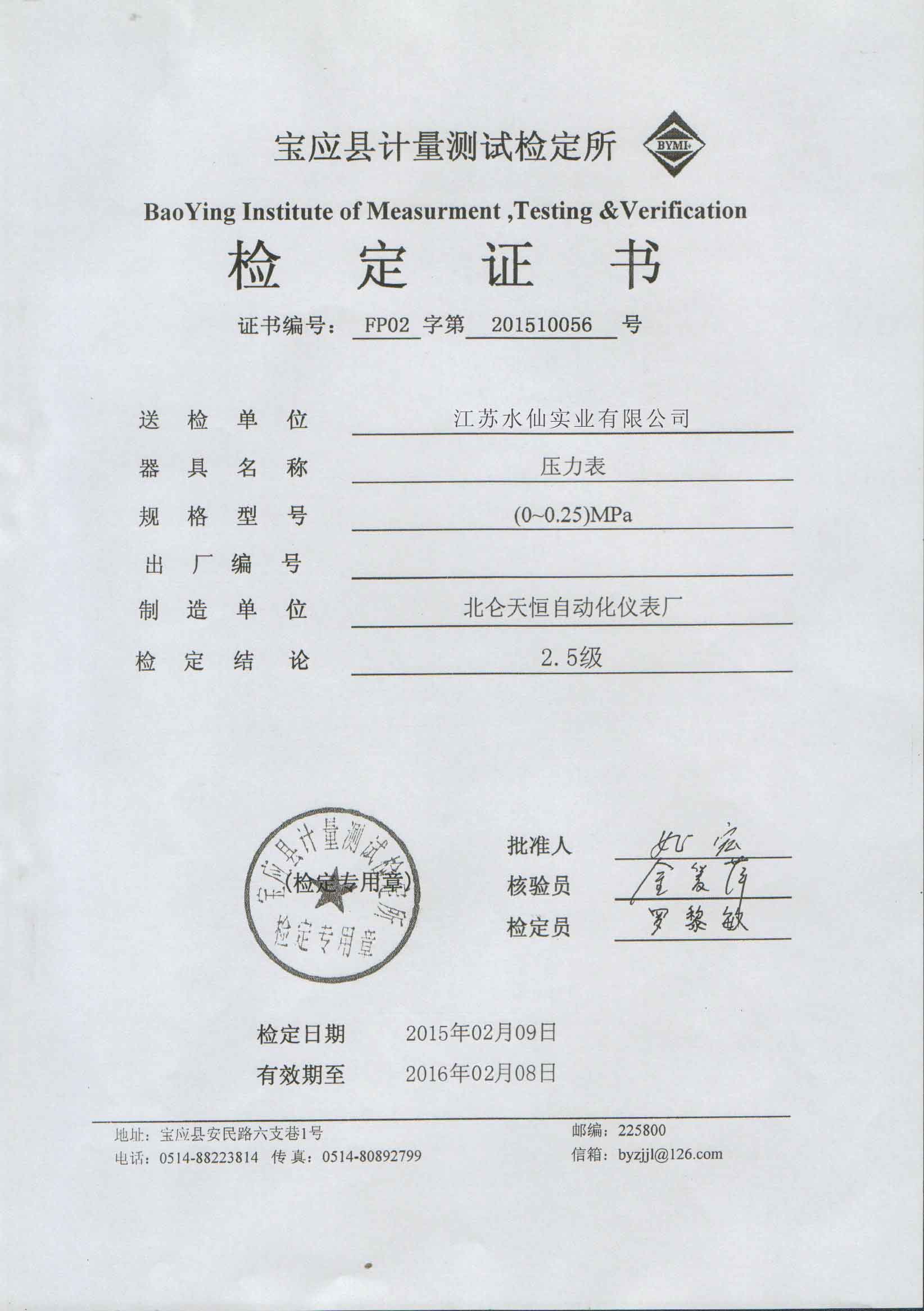 2015器具檢定證書