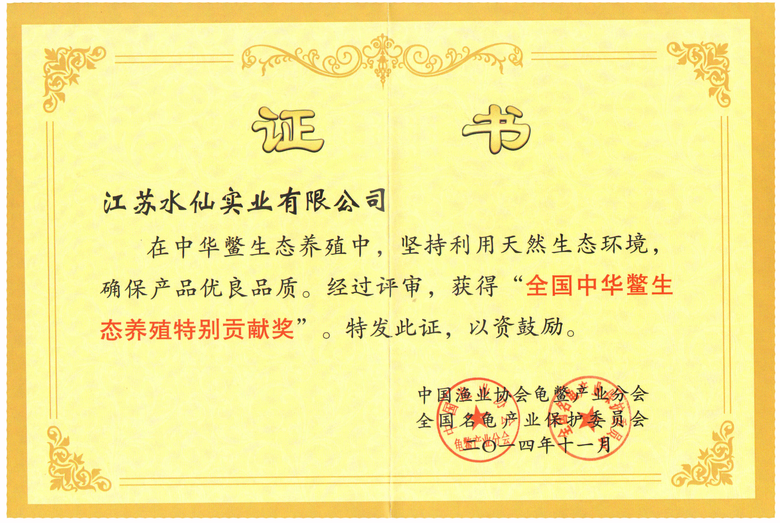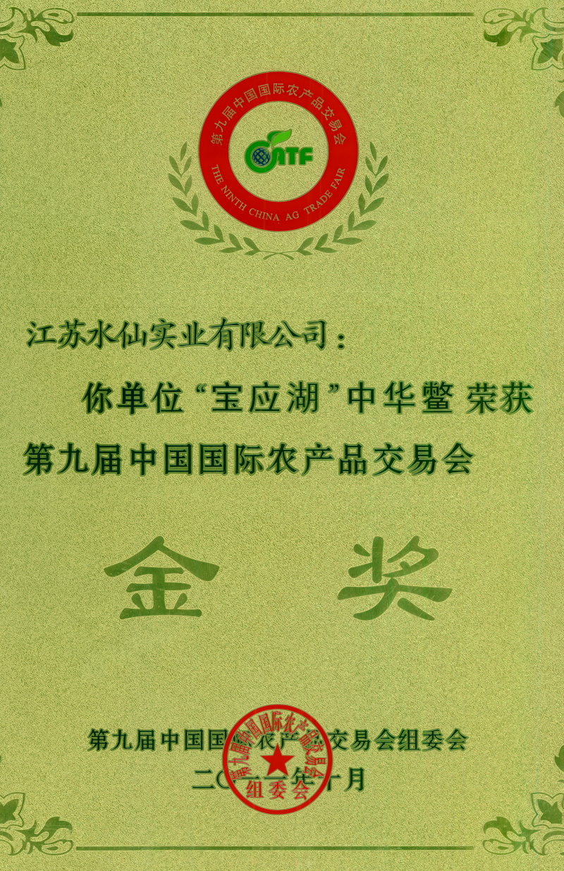 “寶應(yīng)湖”中華鱉獲獎(jiǎng)證書